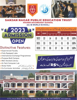 Sanjan Nagar School System (SNSS) is a registered entity with the Education Directorate Government of Punjab.....