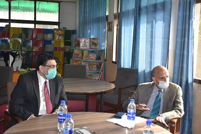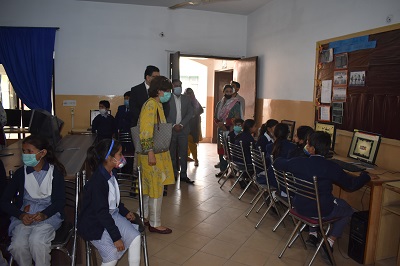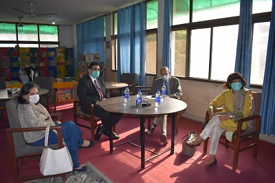 First, they took a tour of the school, talked to the students in classrooms and computer labs. Later they were introduced to the school’s philosophy and history through a detailed PowerPoint presentation in the IB-PYP library. Ch. Mueen Afzal and Mrs.Tasneem Maqbool shared the vision, mission and goals, and current financial challenges of the SNPET.