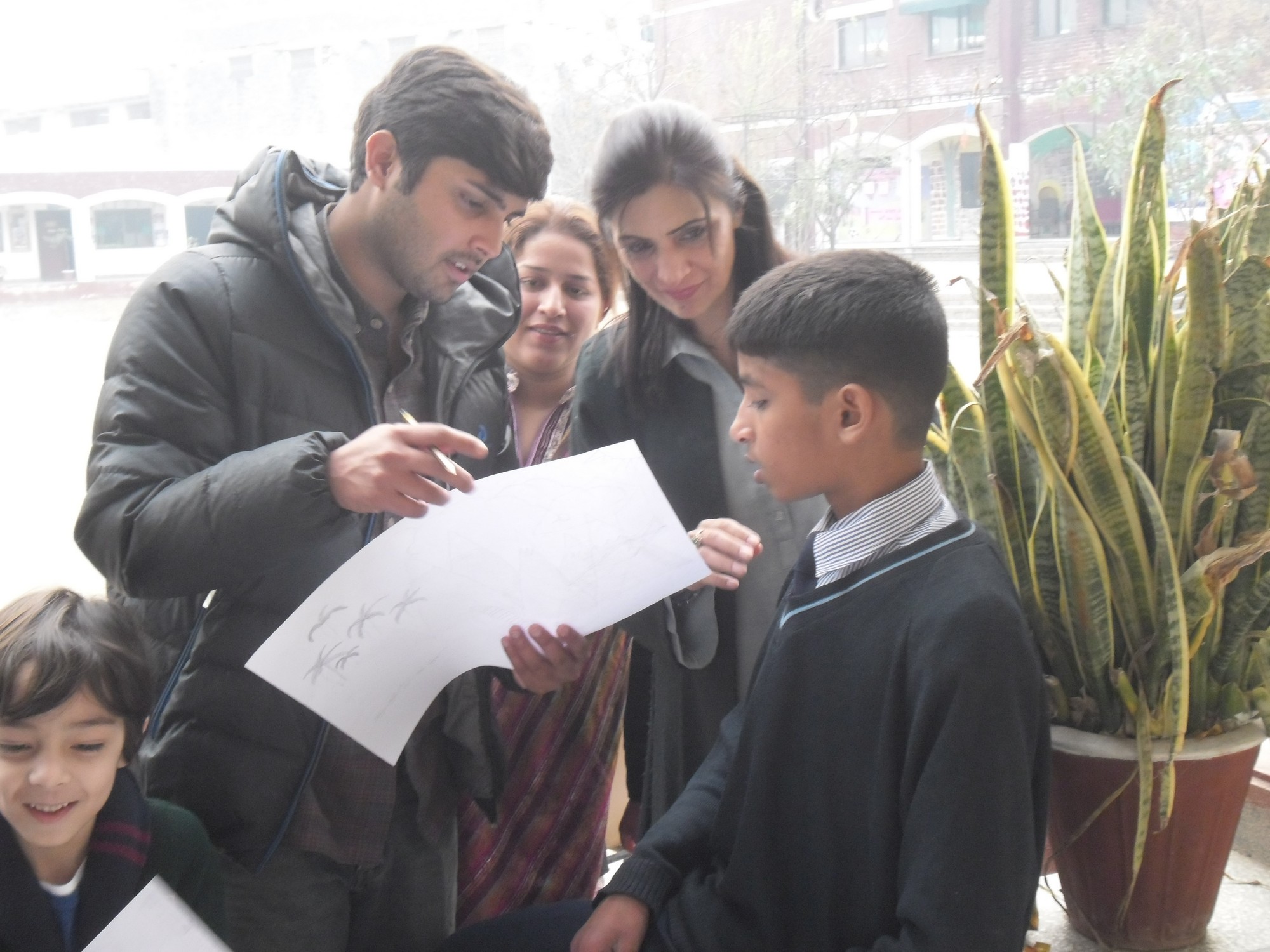 A very bright Artist Julius John visited Sanjan Nagar School along with Ms.Seher Tareen and her five years old son Hussain and Ms.Beena Raza. Julius is recently graduated from NCA and got Fulbright Scholarship. On same day, some of our students from middle school were doing their drawings and paintings for an art competition. Julius saw their work and he liked students’ ideas and art work. He gave some tips to students and also promised to come back and do some workshop with our students on mapping and mind-mapping. We tentatively plan his session in April and June before he leaves for U.S.A. Ms.Seher were also very impressed by Sanjan Nagar students. Her Testimonial is